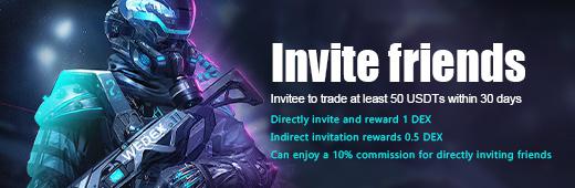 2. If the invitee trades at least 50 USDTs within 30 days, the inviter can receive 1 DEX reward. And you can enjoy a 10% commission on the transaction fees for direct invitees.